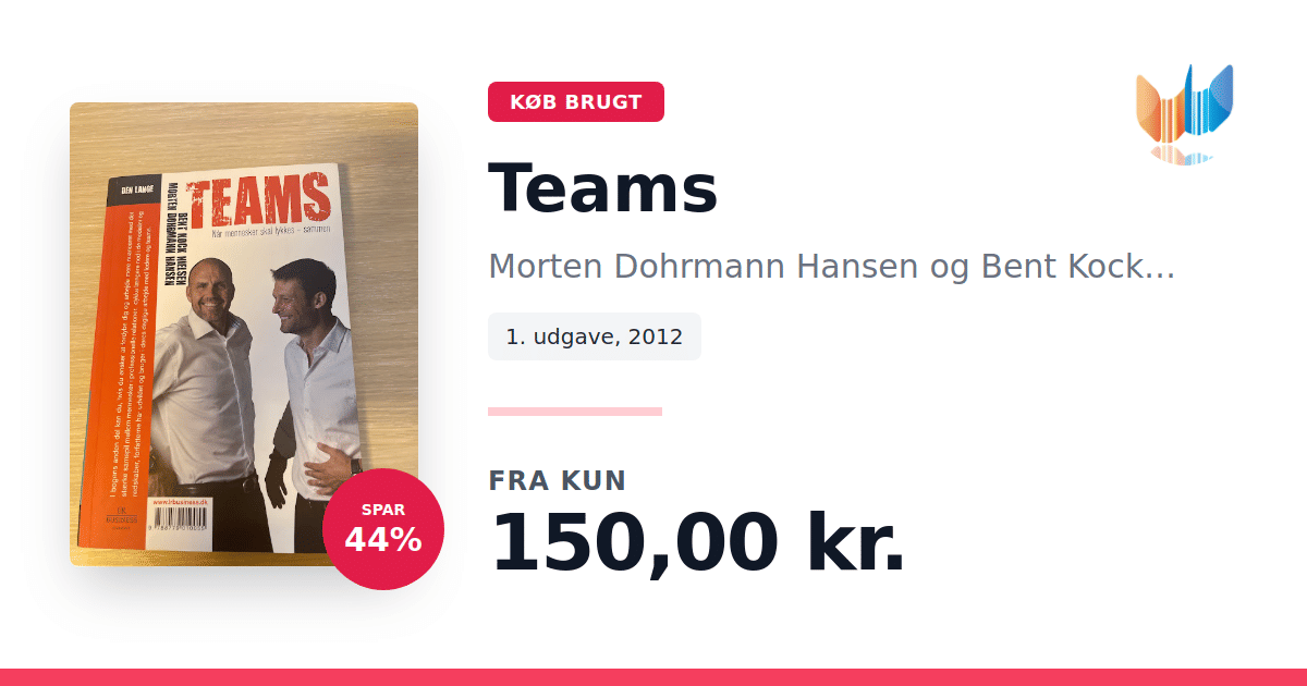 Lige nu kan du købe "Teams" af Morten Dohrmann Hansen og Bent Kock Nielsen til kun 150,00 kr. Du sparer hele 44% af nyprisen! Bogen du ser her er brugt, og i perfekt stand. Vi har i øjeblikket kun et enkelt eksemplar til salg af "Teams", så slå til mens du kan!