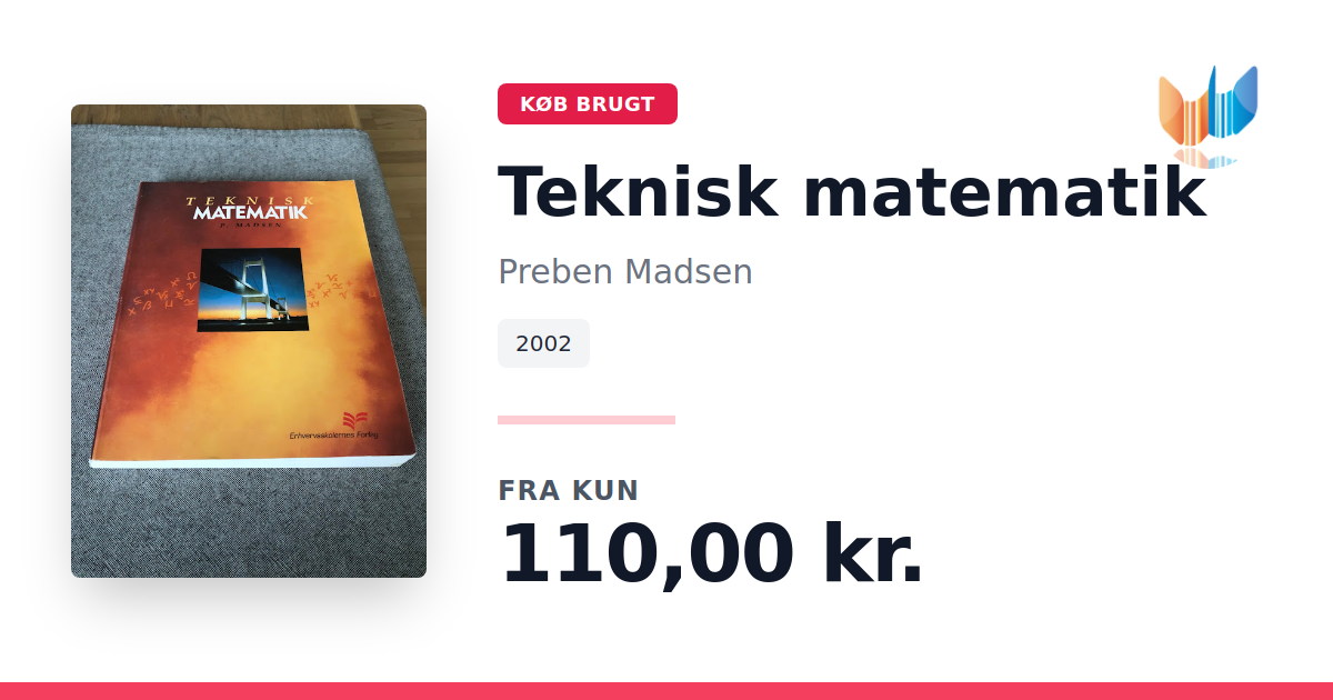 Lige nu kan du købe "Teknisk matematik" af Preben Madsen til kun 110,00 kr. Bogen du ser her er brugt, og i perfekt stand. Vi har i øjeblikket 2 eksemplarer til salg af "Teknisk matematik", så husk at se de forskellige udgaver.