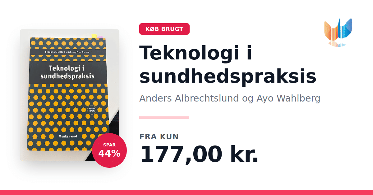 Lige nu kan du købe "Teknologi i sundhedspraksis" af Anders Albrechtslund og Ayo Wahlberg til kun 177,00 kr. Du sparer hele 44% af nyprisen! Bogen du ser her er brugt, og i perfekt stand. Vi har i øjeblikket 3 eksemplarer til salg af "Teknologi i sundhedspraksis", så husk at se de forskellige udgaver.