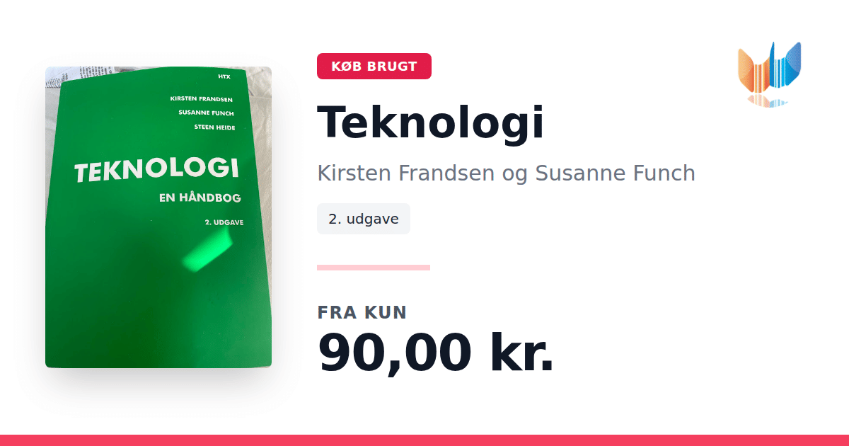 Lige nu kan du købe "Teknologi" af Kirsten Frandsen og Susanne Funch til kun 90,00 kr. Bogen du ser her er brugt, og i perfekt stand. Vi har i øjeblikket kun et enkelt eksemplar til salg af "Teknologi", så slå til mens du kan!