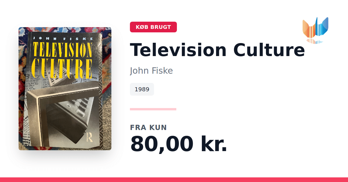 Lige nu kan du købe "Television Culture" af John Fiske til kun 80,00 kr. Bogen du ser her er brugt, og i perfekt stand. Vi har i øjeblikket 2 eksemplarer til salg af "Television Culture", så husk at se de forskellige udgaver.