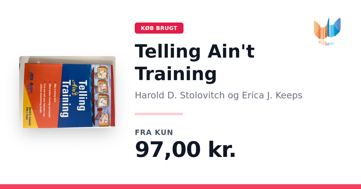 Lige nu kan du købe "Telling Ain't Training" af Harold D. Stolovitch og Erica J. Keeps til kun 97,00 kr. Bogen du ser her er brugt, og i perfekt stand. Vi har i øjeblikket kun et enkelt eksemplar til salg af "Telling Ain't Training", så slå til mens du kan!