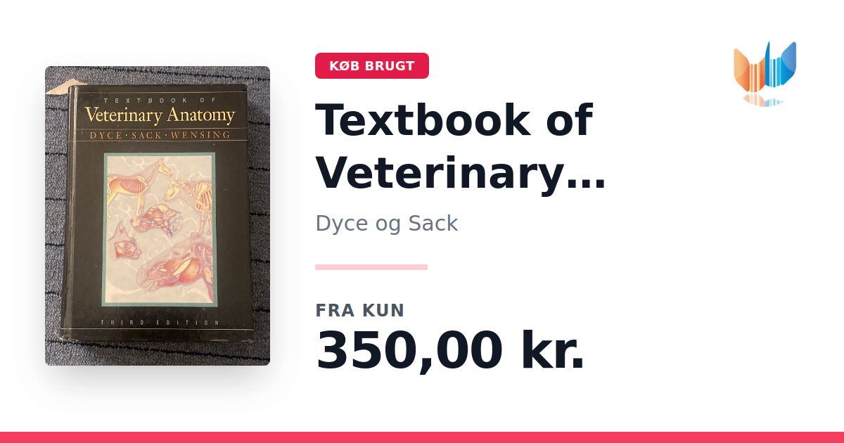 Lige nu kan du købe "Textbook of Veterinary Anatomy" af Dyce og Sack til kun 350,00 kr. Bogen du ser her er brugt, og i god stand. Vi har i øjeblikket kun et enkelt eksemplar til salg af "Textbook of Veterinary Anatomy", så slå til mens du kan!