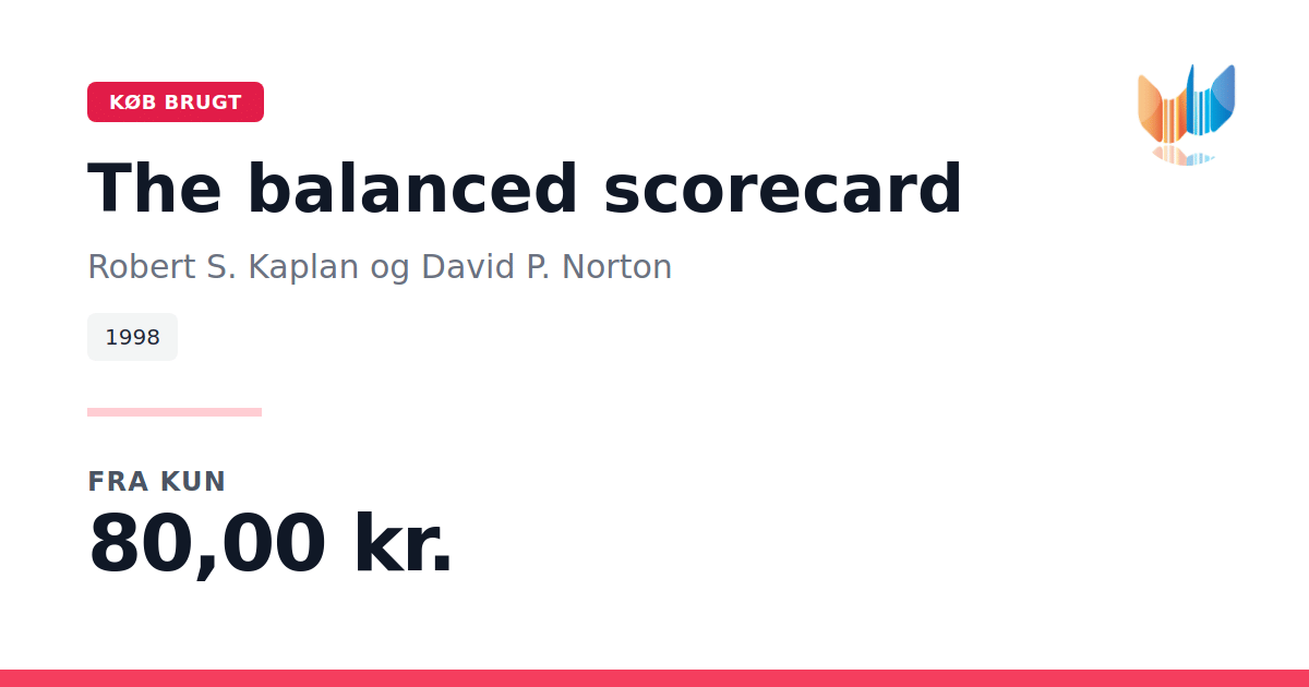 bogen "The Balanced Scorecard" af Robert S. Kaplan og David P. Norton. Balanced Scorecard er et strategisk ledelsesværktøj, der hjælper organisationer med at omsætte visioner og strategier til handling. Værktøjet forbinder overordnede mål med daglige opgaver ved at bruge klare mål, præstationsmålinger og strategiske initiativer. Det ser ud over traditionelle finansielle resultater og måler præstationer ud fra fire perspektiver: finansielle, kunde, interne processer og organisatorisk kapacitet. Formålet er at give et omfattende overblik over fremskridt, så virksomheder kan forblive fokuserede og tilpasse sig for at forbedre deres præstationer. Balanced Scorecard fungerer som et rammeværk for strategisk planlægning, der hjælper med at prioritere projekter og tjenester, kommunikere mål og overvåge fremskridt.