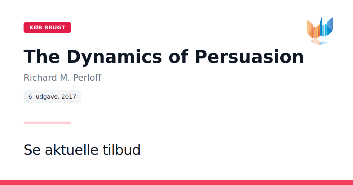 The Dynamics of Persuasion har i næsten tyve år været en central lærebog inden for overbevisning og holdningsdannelse. Richard M. Perloff formidler komplekse teorier og forskningsresultater i et levende og lettilgængeligt sprog, understøttet af relevante og aktuelle eksempler fra virkeligheden. I sjette udgave præsenteres opdateret teoretisk og anvendt forskning på områder som framing, inoculation og selvbekræftelse. Derudover indeholder udgaven nye studier af sundhedskampagner, et udvidet fokus på markedsføring via sociale medier samt en forstærket gennemgang af Elaboration Likelihood Model set i lyset af nyere forskning og hverdagsanvendelser. Grundlaget i bogen fastholdes med en stærk vægt på teori, klare forklaringer af fund, indgående drøftelser af overbevisningsprocesser og -effekter samt letforståelige, praksisnære eksempler, der binder teori og virkelighed sammen. Som supplement findes et omfattende website med materialer til både studerende og undervisere, som udvider bogens pædagogiske muligheder og understøtter læringsprocessen.