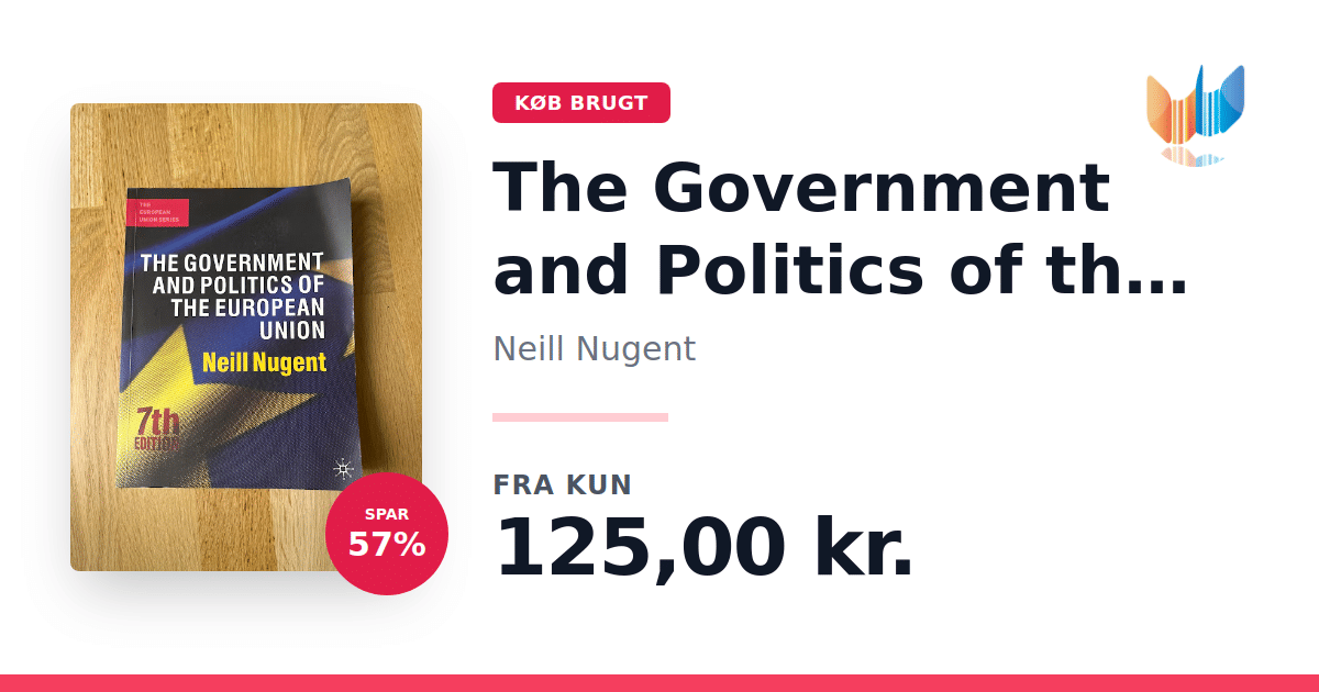 Lige nu kan du købe "The Government and Politics of the European Union" af Neill Nugent til kun 125,00 kr. Du sparer hele 57% af nyprisen! Bogen du ser her er brugt, og i perfekt stand. Vi har i øjeblikket kun et enkelt eksemplar til salg af "The Government and Politics of the European Union", så slå til mens du kan!