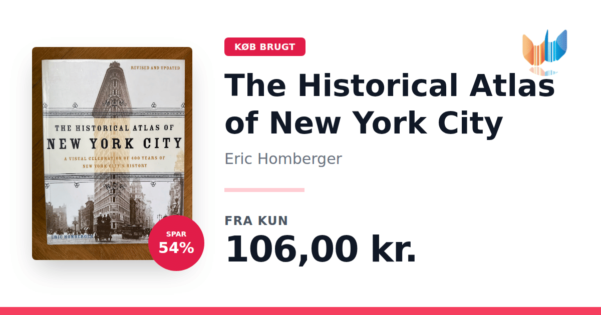 Lige nu kan du købe "The Historical Atlas of New York City" af Eric Homberger til kun 106,00 kr. Du sparer hele 54% af nyprisen! Bogen du ser her er brugt, og i god stand. Vi har i øjeblikket kun et enkelt eksemplar til salg af "The Historical Atlas of New York City", så slå til mens du kan!