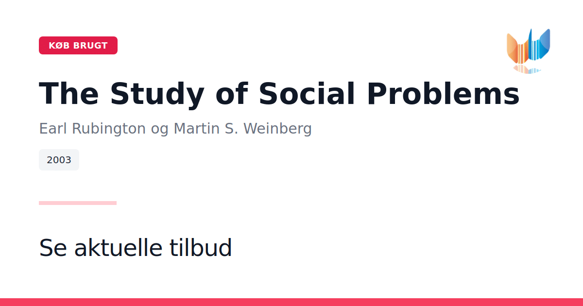 The Study of Social Problems af Earl Rubington og Martin S. Weinberg er en grundbog, der giver studerende et solidt fundament i sociologiske analyser af samfundets udfordringer. Bogen præsenterer en systematisk gennemgang af centrale teorier og tilgange, der hver især kaster lys over, hvad der kan opfattes som "sociale problemer". Gennem syv klare perspektiver - social patologi, social uorden, værdikonflikter, afvigende adfærd, labeling, det kritiske perspektiv og social konstruktionisme - guides læseren ind i, hvordan disse rammer kan anvendes til at forstå både individuelle og kollektive fænomener. Hvert kapitel leverer eksempler og cases, der illustrerer teoriernes relevans i moderne samfund. Med sin pædagogiske struktur og rigt indhold er bogen velegnet som kursuslitteratur i sociologi og beslægtede fag. The Study of Social Problems kombinerer teoretisk stringens med praktiske illustrationer og fungerer som et uundværligt redskab for både undervisere og studerende.
