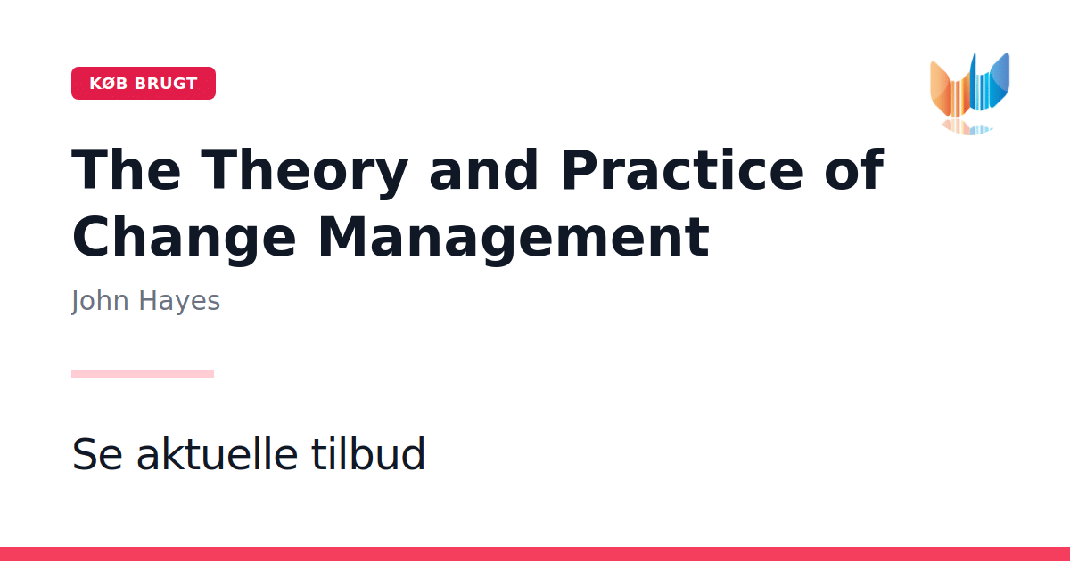John Hayes’ "The Theory and Practice of Change Management" (5. udgave, 2018) er en førende lærebog i forandringsledelse, der kombinerer en skarp teoretisk ramme med en praktisk tilgang. Med sine 592 sider giver bogen et klart billede af forandring som en målrettet og planlagt proces frem for en tilfældig størrelse. Bogen introducerer en række "Change Tools", som læseren kan anvende direkte på konkrete scenarier. Et rigt udvalg af virkelighedsbaserede case-studier supplerer de praktiske værktøjer, og videointerviews med erfarne forandringsledere bidrager med autentiske indsigter og erfaringer fra globale organisationer. Målgruppen er især studerende på sidste år af erhvervsøkonomiuddannelser, MBA- og kandidatstudier med fokus på forandringsledelse eller organisationsudvikling. Samtidig er bogen en værdifuld ressource for professionelle forandringskonsulenter og ledere, der ønsker at styrke deres metodeapparat og gennemføre succesfulde forandringsprojekter.