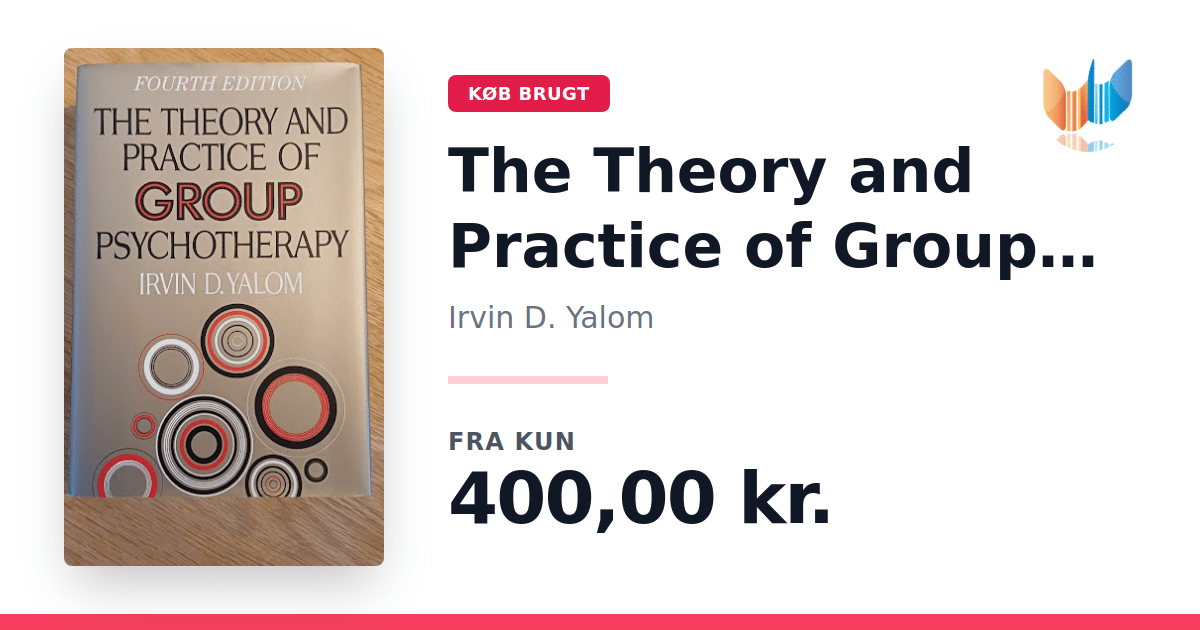 Lige nu kan du købe "The Theory and Practice of Group Psychotherapy" af Irvin D. Yalom til kun 400,00 kr. Bogen du ser her er brugt, og i perfekt stand. Vi har i øjeblikket kun et enkelt eksemplar til salg af "The Theory and Practice of Group Psychotherapy", så slå til mens du kan!