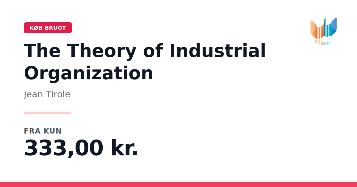 Udgivet i 1988 af MIT Press og på 479 sider, er The Theory of Industrial Organization Jean Tiroles grundlæggende lærebog for avancerede bachelor- og kandidatstuderende. Skriftet er på engelsk og henvender sig til dem, der ønsker en stringent analytisk indføring i industriel organisationsøkonomi. Hvert kapitel er omhyggeligt struktureret med en hoveddel og en supplerende sektion, der rummer mere avanceret materiale. Indledningsvist præsenteres læseren for virksomhedsteoriens fundament gennem enkle, intuitive modeller, som gradvist udbygges i takt med den seneste økonomiske forskning. I del I udvikles den moderne monopolteori med fokus på prisfastsættelse for enkelt- og flerproduktvirksomheder, statisk og intertemporal prisdiskrimination, kvalitetsvalg, omdømmeeffekter og vertikale begrænsninger. Modellerne er tilpasset, så de fremhæver de centrale økonomiske mekanismer samtidig med, at de bevarer en intuitiv forståelse. Del II omhandler strategisk samspil mellem virksomheder. Her behandles Bertrand-Cournot-prismodeller, kapacitetsbegrænsninger, gentagne interaktioner, produktpositionering, reklame og asymmetrisk information samt deres rolle i konkurrence og tavs karteldannelse. Afslutningsvis tilbyder Tirole en brugervenlig spilteori-håndbog og en samling øvelser, der gør læseren i stand til at teste og konsolidere forståelsen.
