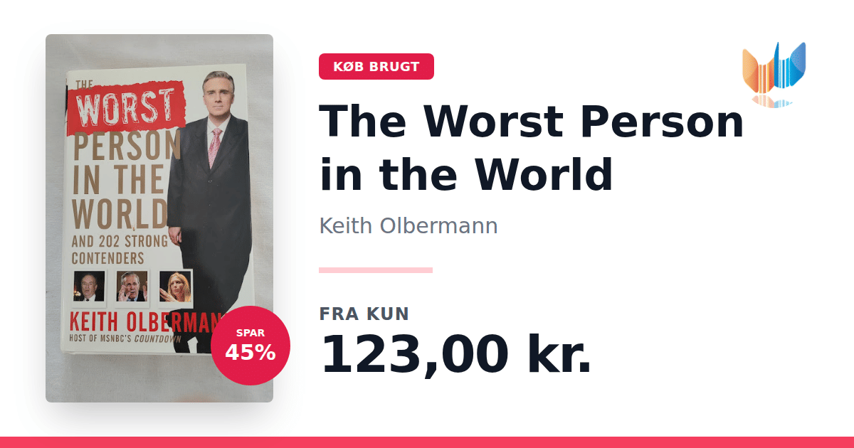 Lige nu kan du købe "The Worst Person in the World" af Keith Olbermann til kun 123,00 kr. Du sparer hele 45% af nyprisen! Bogen du ser her er brugt, og i perfekt stand. Vi har i øjeblikket kun et enkelt eksemplar til salg af "The Worst Person in the World", så slå til mens du kan!