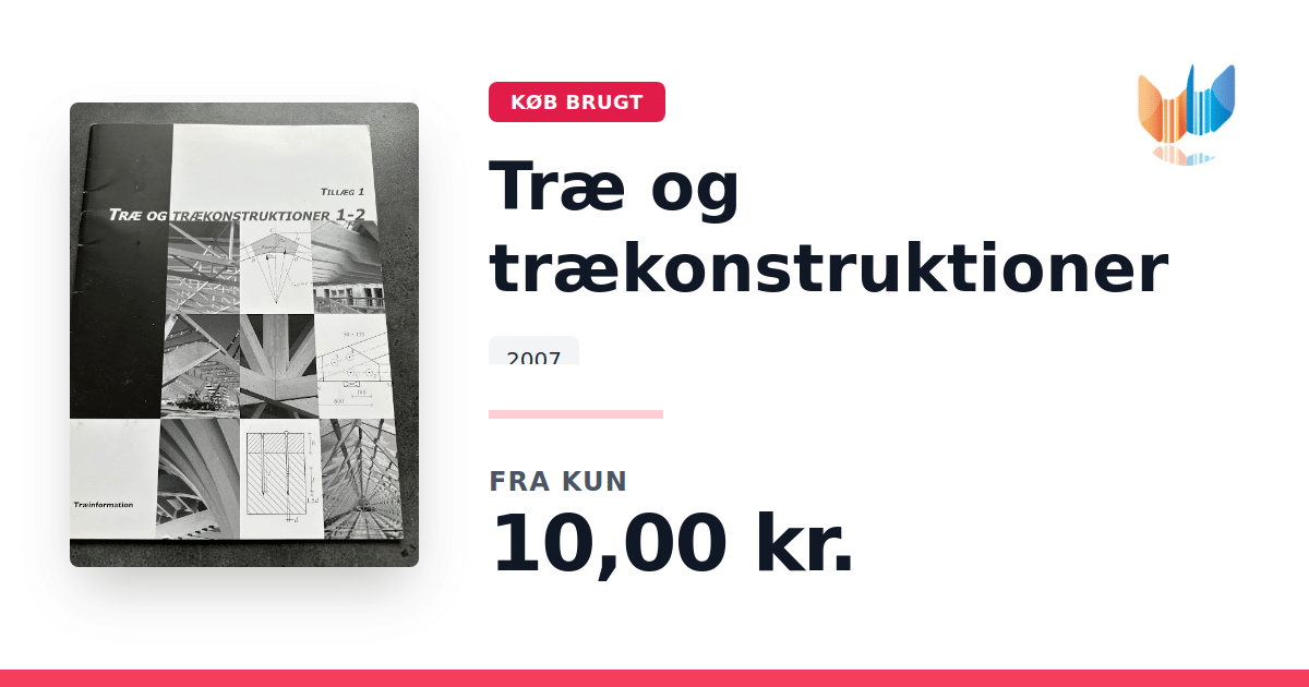 Lige nu kan du købe "Træ og trækonstruktioner" til kun 10,00 kr. Bogen du ser her er brugt, og i perfekt stand. Vi har i øjeblikket kun et enkelt eksemplar til salg af "Træ og trækonstruktioner", så slå til mens du kan!