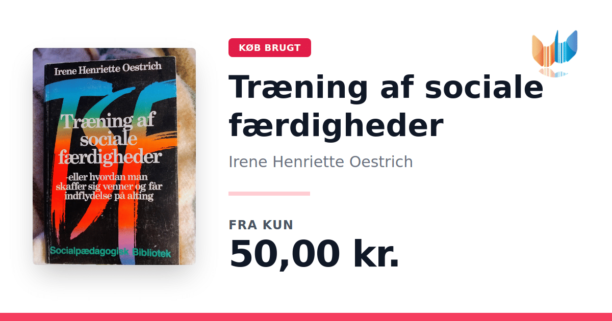 Lige nu kan du købe "Træning af sociale færdigheder" af Irene Henriette Oestrich til kun 50,00 kr. Bogen du ser her er brugt, og i god stand. Vi har i øjeblikket kun et enkelt eksemplar til salg af "Træning af sociale færdigheder", så slå til mens du kan!
