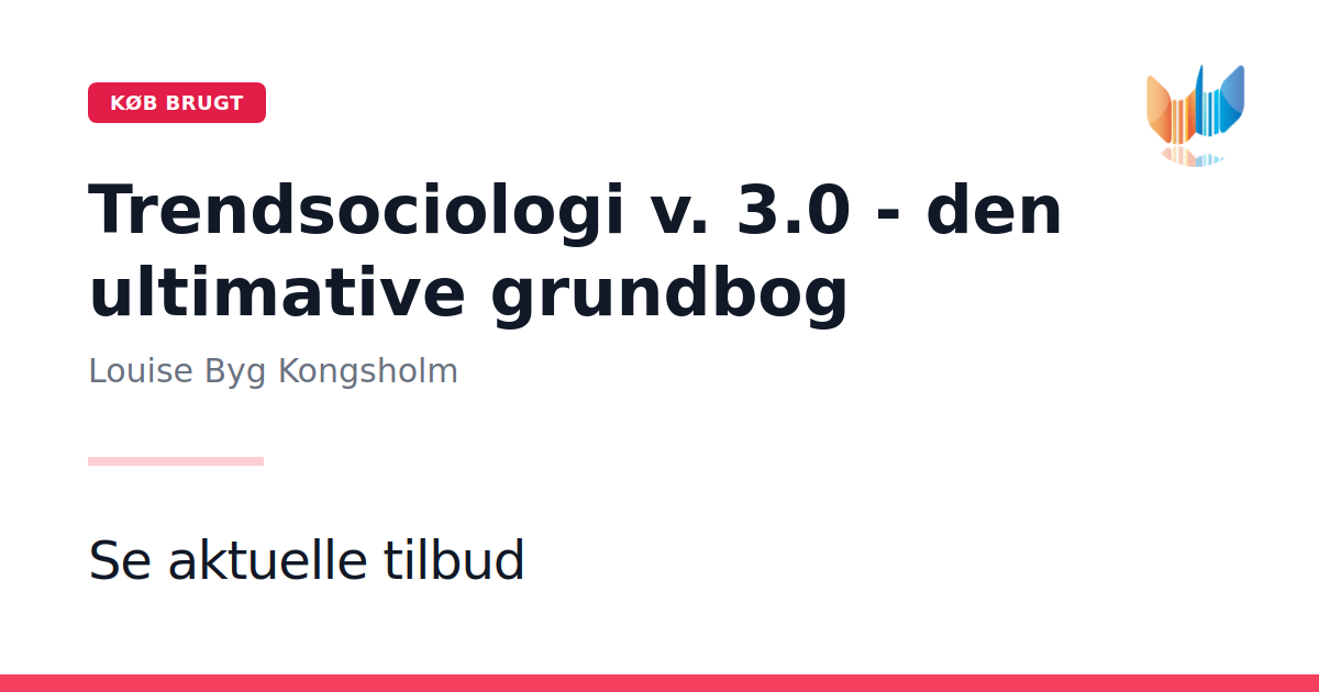 Træd ind i trendsverdenens komplekse labyrint med "Trendsociologi v. 3.0 – den ultimative grundbog". I denne grundbog afslører Louise Byg Kongsholm, hvordan man navigerer blandt de skiftende og ofte uigennemskuelige strømninger, der former vores moderne virkelighed. Gennem en kombination af teoretisk indsigt og praktiske metoder lærer bogen dig at spotte, afkode og reagere på alt fra langvarige gigatrends til de flygtige mikrotrends. Den reviderede udgave, beriget med nye interviews og opdaterede perspektiver, giver et friskt og virkelighedsnært billede af trendsforskningen. Bogen henvender sig til både undervisere, studerende, teoretikere og praktikere, som ønsker at forstå og udnytte trends i deres arbejde. Med en struktureret og inspirerende tilgang bliver denne grundbog et uundværligt redskab i jagten på indsigt i trenddynamikkens forunderlige verden.