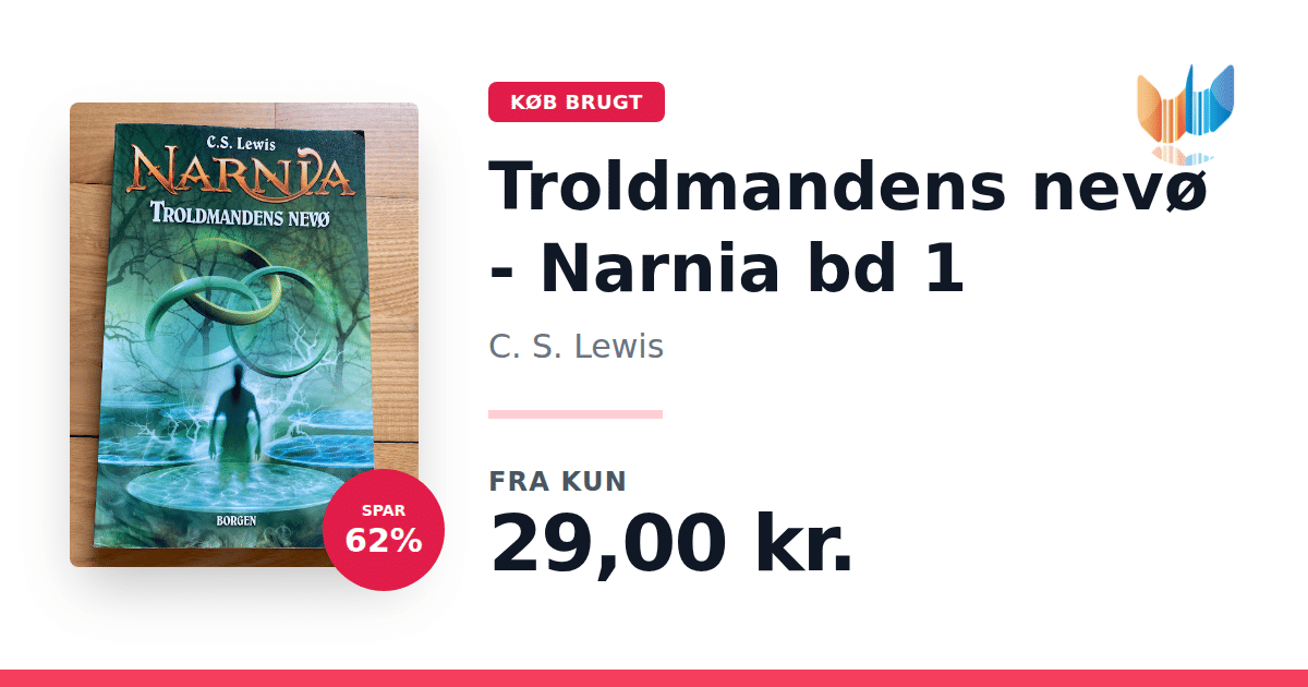 Lige nu kan du købe "Troldmandens nevø - Narnia bd 1" af C. S. Lewis til kun 29,00 kr. Du sparer hele 62% af nyprisen! Bogen du ser her er brugt, og i god stand. Vi har i øjeblikket kun et enkelt eksemplar til salg af "Troldmandens nevø - Narnia bd 1", så slå til mens du kan!