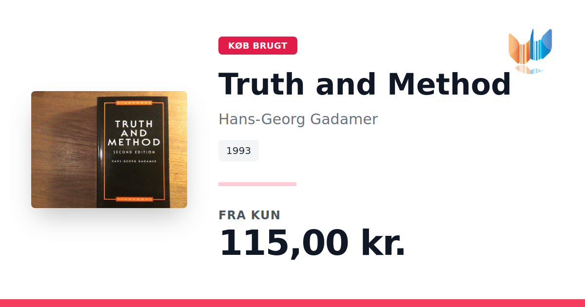 Lige nu kan du købe "Truth and Method" af Hans-Georg Gadamer til kun 115,00 kr. Bogen du ser her er brugt, og i perfekt stand. Vi har i øjeblikket kun et enkelt eksemplar til salg af "Truth and Method", så slå til mens du kan!