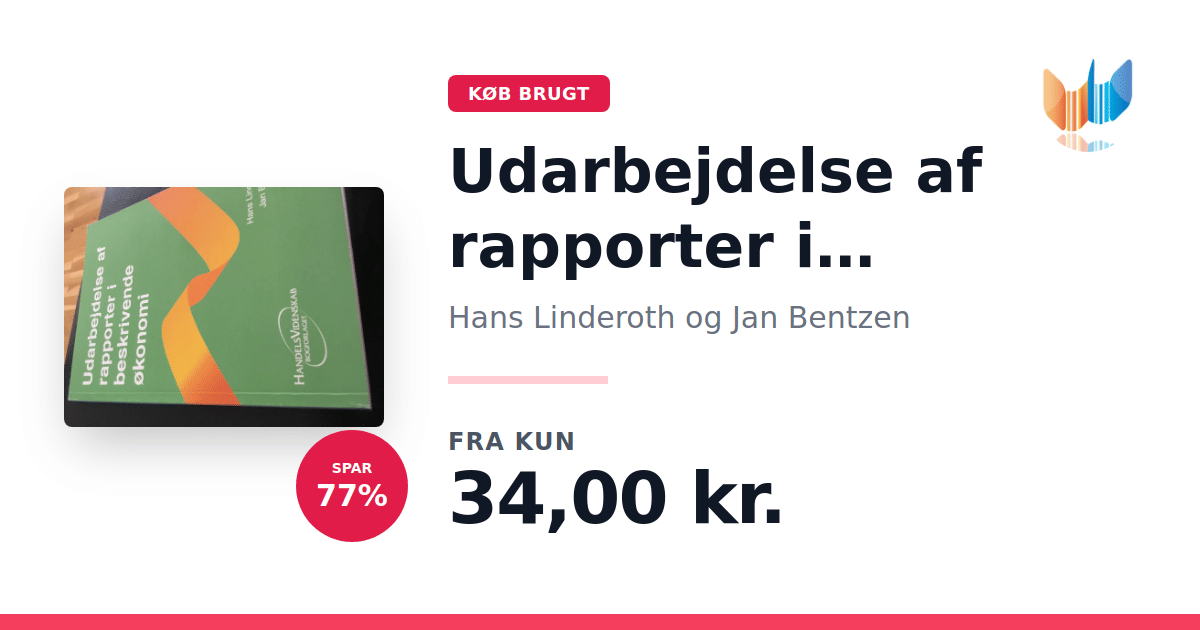 Lige nu kan du købe "Udarbejdelse af rapporter i beskrivende økonomi" af Hans Linderoth og Jan Bentzen til kun 34,00 kr. Du sparer hele 77% af nyprisen! Bogen du ser her er brugt, og i perfekt stand. Vi har i øjeblikket 2 eksemplarer til salg af "Udarbejdelse af rapporter i beskrivende økonomi", så husk at se de forskellige udgaver.