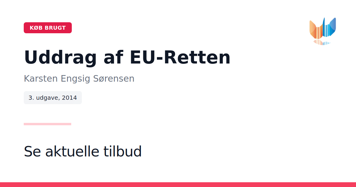 Denne 6. udgave af Uddrag af EU-retten, udarbejdet af Karsten Engsig Sørensen, Poul Runge Nielsen og Jens Hartig Danielsen, præsenterer en overskuelig introduktion til de institutionelle strukturer, retsgrundlaget for Danmarks EU-medlemskab samt de væsentlige EU-retskilder. Bogen er designet med henblik på undervisning, hvor den som en forkortet version af EU-retten dykker ned i de centrale kapitler, der også findes i den fulde udgave. Strukturen er omhyggeligt sammensat for at spejle den uforkortede version, hvilket gør den til et værdifuldt redskab for både studerende og undervisere.