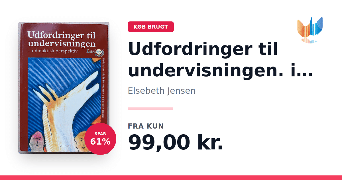 Lige nu kan du købe "Udfordringer til undervisningen. i didaktisk perspektiv" af Elsebeth Jensen til kun 99,00 kr. Du sparer hele 61% af nyprisen! Bogen du ser her er brugt, og i perfekt stand. Vi har i øjeblikket kun et enkelt eksemplar til salg af "Udfordringer til undervisningen. i didaktisk perspektiv", så slå til mens du kan!