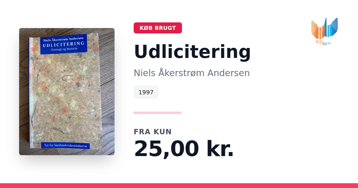 Lige nu kan du købe "Udlicitering" af Niels Åkerstrøm Andersen til kun 25,00 kr. Bogen du ser her er brugt, og i perfekt stand. Vi har i øjeblikket kun et enkelt eksemplar til salg af "Udlicitering", så slå til mens du kan!