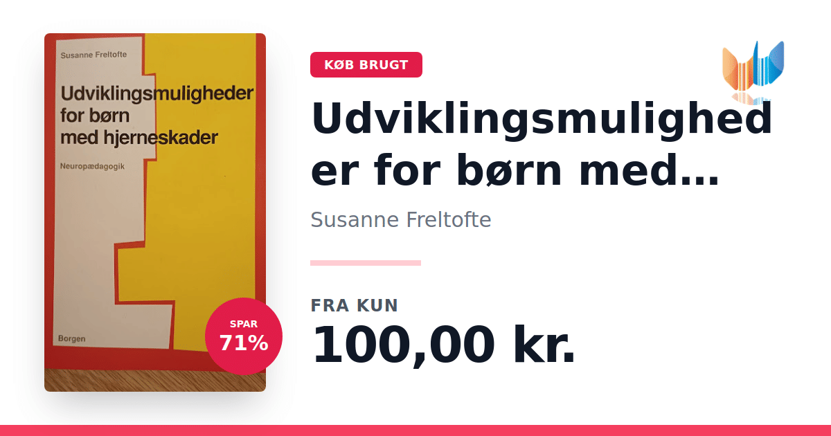 Lige nu kan du købe "Udviklingsmuligheder for børn med hjerneskader" af Susanne Freltofte til kun 125,00 kr. Du sparer hele 63% af nyprisen! Bogen du ser her er brugt, og i god stand. Vi har i øjeblikket kun et enkelt eksemplar til salg af "Udviklingsmuligheder for børn med hjerneskader", så slå til mens du kan!
