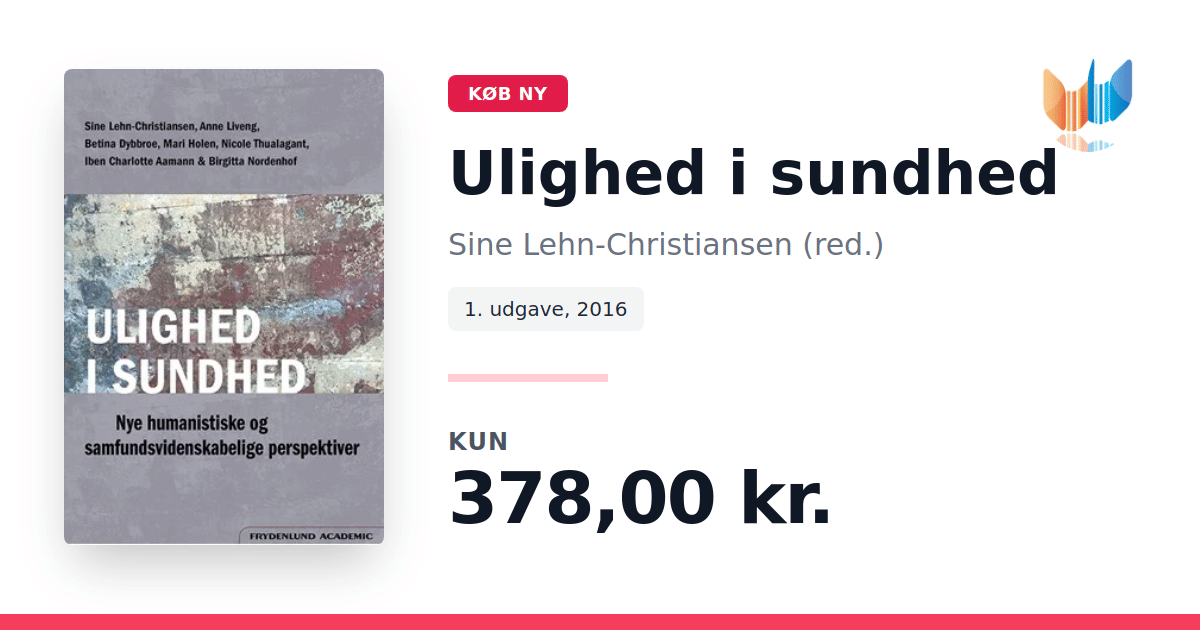 Lige nu kan du købe "Ulighed i sundhed" af Sine Lehn-Christiansen (red.) til kun 378,00 kr. Bogen du ser her er ny, og kan købe gennem vores partner Plusbog.