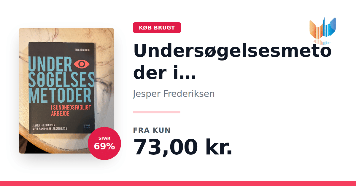 I "Undersøgelsesmetoder i sundhedsfagligt arbejde" introducerer Jesper Frederiksen en bred vifte af metoder, der understøtter sundhedsprofessionelles evne til at identificere, analysere og udvikle klinisk praksis. Bogen illustrerer, hvordan konkrete kliniske problemstillinger kan undersøges med henblik på både at forstå og forklare komplekse sammenhænge, således at læseren opnår værktøjer til aktivt at håndtere udfordringer i det daglige arbejde. Indholdet er inddelt i tre hoveddele, der tilsammen udgør en videnskabeligt funderet værktøjskasse. I første del behandles den narrative, kropsfænomenologiske og hermeneutiske tilgang. Anden del fokuserer på metoder som dokumentanalyse, deltagerobservation og fokusgruppeinterview, mens den tredje del præsenterer systematisk litteraturstudie, statistisk analyse og eksperimentel metode. Denne inddeling sikrer, at både kvalitative og kvantitative metoder fremhæves i forhold til en helhedsorienteret praksisundersøgelse. Bogen, som består af 215 sider i paperback og blev udgivet af Samfundslitteratur i 2019, henvender sig til professionsbachelorstuderende inden for sundhedsuddannelserne samt til sundhedsprofessionelle, der ønsker at styrke deres forskningsbaserede tilgang i klinisk praksis.