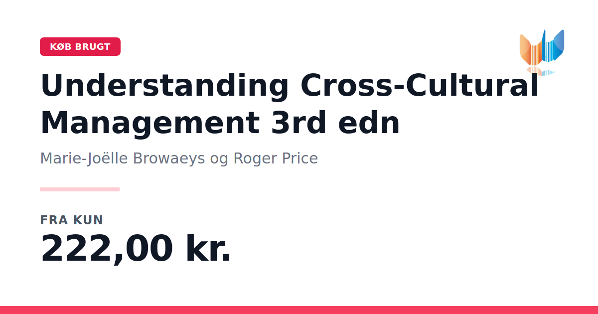 At lede effektivt på tværs af nationale og kulturelle grænser er en afgørende forudsætning for nutidens organisationers succes i en stadig mere globaliseret verden. Forandringsmønstre, forskellige arbejdsformer og en stadigt mere mangfoldig medarbejderstab kræver, at både nuværende og kommende ledere udvikler en skarp kulturel forståelse og tværkulturel kompetence. I denne tredje udgave af Understanding Cross-Cultural Management (2015) bygger Marie-Joelle Browaeys og Roger Price videre på feedback fra læsere og opdaterer centrale temaer og problemstillinger. Bogen dykker ned i de mest udfordrende og fascinerende aspekter af forretnings-, organisations- og samfundsliv - og klæder dig på med praktiske redskaber og indsigter, der styrker din evne til at agere professionelt i et globalt arbejdsfelt.