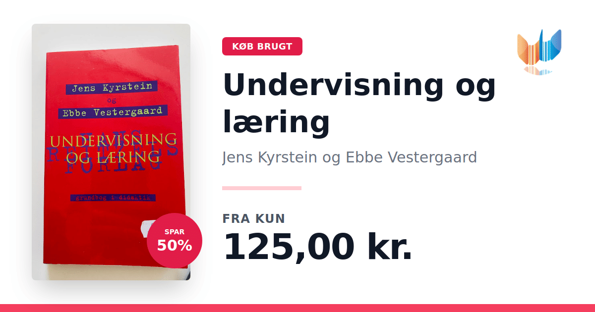 Lige nu kan du købe "Undervisning og læring" af Jens Kyrstein og Ebbe Vestergaard til kun 125,00 kr. Du sparer hele 50% af nyprisen! Bogen du ser her er brugt, og i perfekt stand. Vi har i øjeblikket 2 eksemplarer til salg af "Undervisning og læring", så husk at se de forskellige udgaver.