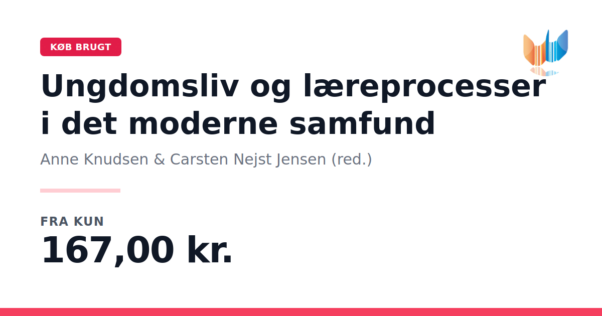 Lige nu kan du købe "Ungdomsliv og læreprocesser i det moderne samfund" af Anne Knudsen & Carsten Nejst Jensen (red.) til kun 167,00 kr. Du sparer hele 44% af nyprisen! Bogen du ser her er brugt, og i perfekt stand. Vi har i øjeblikket 3 eksemplarer til salg af "Ungdomsliv og læreprocesser i det moderne samfund", så husk at se de forskellige udgaver.