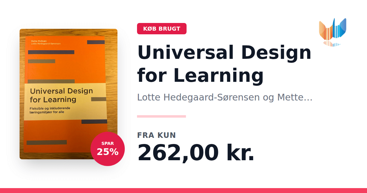 Lige nu kan du købe "Universal Design for Learning" af Lotte Hedegaard-Sørensen og Mette Molbæk til kun 262,00 kr. Du sparer hele 25% af nyprisen! Bogen du ser her er brugt, og i perfekt stand. Vi har i øjeblikket kun et enkelt eksemplar til salg af "Universal Design for Learning", så slå til mens du kan!