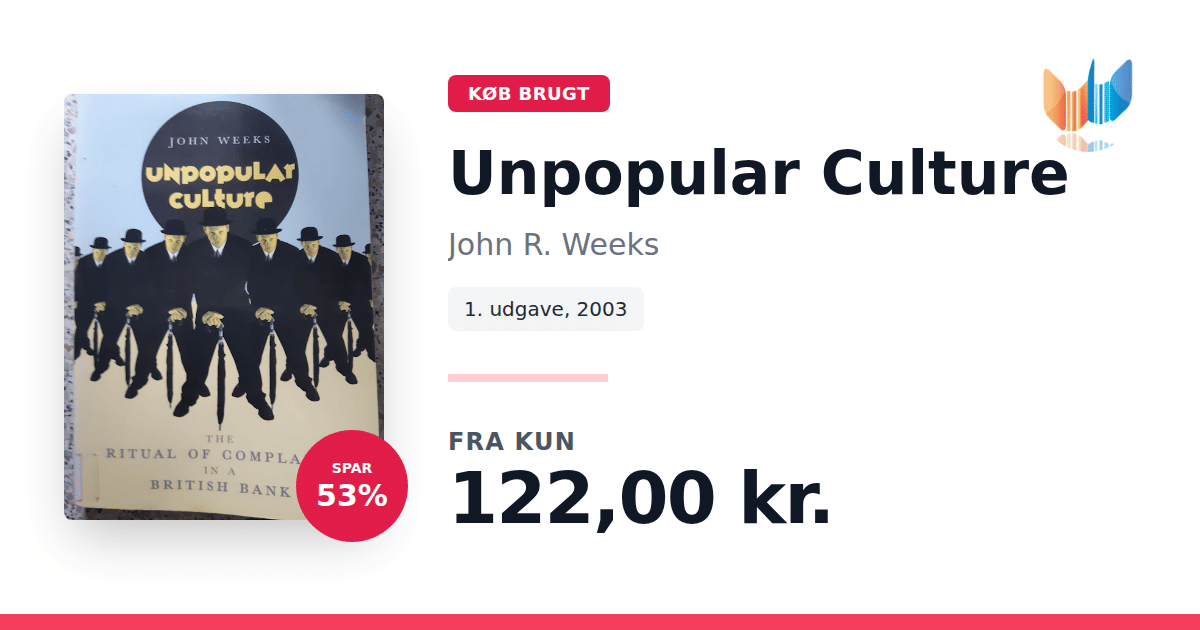 Lige nu kan du købe "Unpopular Culture" af John R. Weeks til kun 122,00 kr. Du sparer hele 53% af nyprisen! Bogen du ser her er brugt, og i god stand. Vi har i øjeblikket kun et enkelt eksemplar til salg af "Unpopular Culture", så slå til mens du kan!