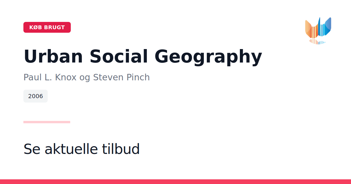 Urban Social Geography: An Introduction giver en grundig gennemgang af urban social geografi fra teoriens rødder til aktuelle diskussioner. Bogen tegner et klart billede af, hvordan sociale, kulturelle og økonomiske kræfter former bylivet, og viser læseren, hvordan man analyserer og forstår byrum i praksis. Hver kapitel er struktureret omkring centrale spørgsmål og begreber, der guider studerende ind i stoffet og inviterer til videre refleksion. Kapitelopsummeringer giver et hurtigt overblik, mens anbefalet litteratur inviterer til selvstændig fordybelse i emnerne. Teksten er skrevet i et levende og tilgængeligt sprog, og den er illustreret med fotos, diagrammer og tabeller, som understøtter forståelsen af komplekse teorier. En omfattende ordliste samler alle nøglebegreber ét sted og sikrer, at studerende hurtigt kan finde forklaringer på faglige termer. Urban Social Geography henvender sig til alle, der studerer urban geografi, socialgeografi, planlægning, sociologi og beslægtede samfundsvidenskabelige fag. Med sine 396 sider som paperback fra Pearson Education (2006) er den en uundværlig introduktion til emnet.