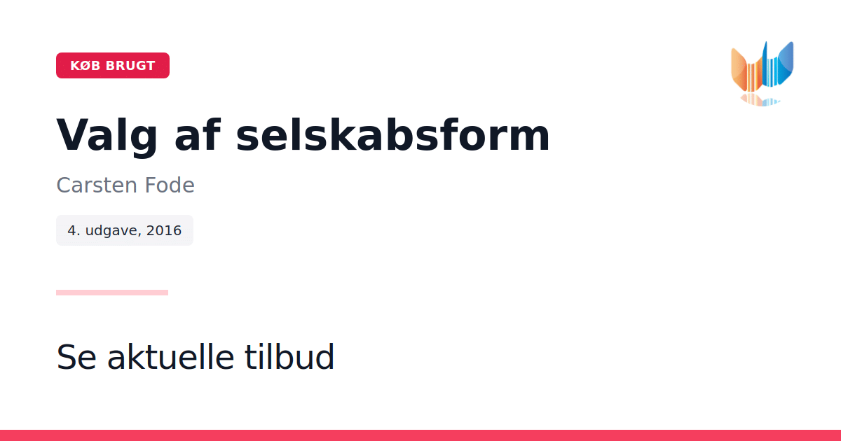 Carsten Fode præsenterer i denne fjerde udgave af Valg af selskabsform en grundig gennemgang af de forskellige selskabsformer og deres omstrukturering. Bogen fokuserer på at give advokater, revisorer og andre rådgivere et solidt grundlag for at kunne rådgive deres klienter om valg af selskabsform samt efterfølgende ændringer i selskabsstrukturen. Med et klart overblik over fordele og ulemper ved de enkelte selskabsmodeller, belyses de centrale motiver, der bør danne grundlag for beslutningerne. Denne 807-siders bog tilbyder en struktureret tilgang, der gør det nemt at sammenligne de mange aspekter, som spiller ind ved selskabsomdannelse og andre selskabsretlige omstruktureringer.