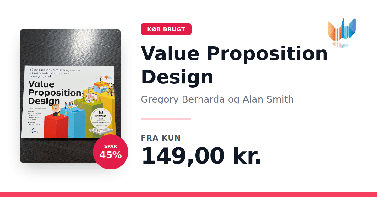 Lige nu kan du købe "Value Proposition Design" af Gregory Bernarda og Alan Smith til kun 149,00 kr. Du sparer hele 45% af nyprisen! Bogen du ser her er brugt, og i perfekt stand. Vi har i øjeblikket 3 eksemplarer til salg af "Value Proposition Design", så husk at se de forskellige udgaver.