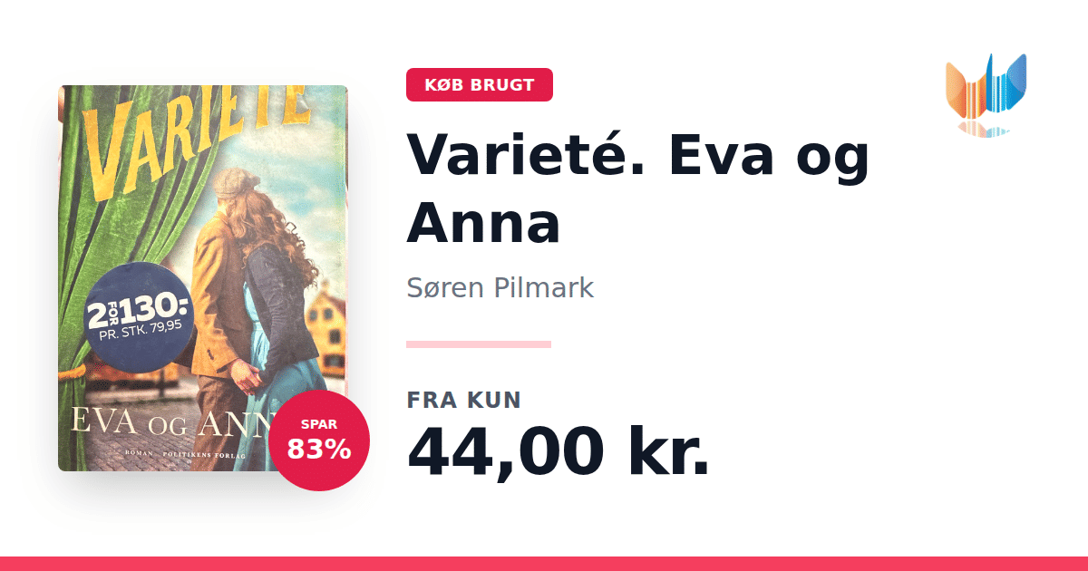 Lige nu kan du købe "Varieté. Eva og Anna" af Søren Pilmark til kun 44,00 kr. Du sparer hele 83% af nyprisen! Bogen du ser her er brugt, og i slidt stand. Vi har i øjeblikket kun et enkelt eksemplar til salg af "Varieté. Eva og Anna", så slå til mens du kan!