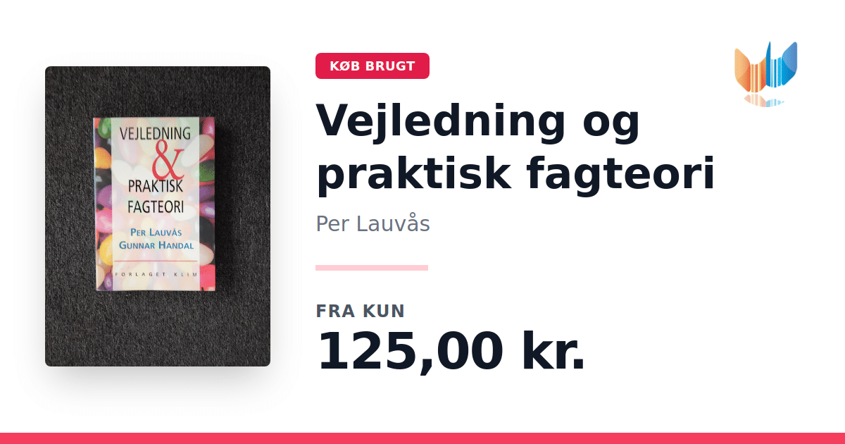 Lige nu kan du købe "Vejledning og praktisk fagteori" af Per Lauvås til kun 125,00 kr. Bogen du ser her er brugt, og i god stand. Vi har i øjeblikket kun et enkelt eksemplar til salg af "Vejledning og praktisk fagteori", så slå til mens du kan!