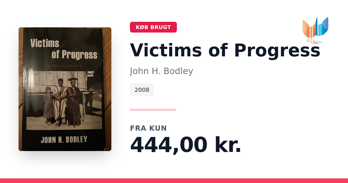 Victims of Progress giver et indgående, globalt overblik over småskalasamfundenes kamp mod kolonister og multinationale selskaber, der gennem de sidste 200 år har invaderet deres territorier for at udvinde naturressourcer. John H. Bodley viser, hvordan disse samfund organiserer sig politisk for at forsvare deres grundlæggende menneskerettigheder, samtidig med at de konfronteres med moderne udviklingsprojekter. Bogen undersøger de mest afgørende interventioner i oprindelige folks liv: fra social ingeniørkunst og økonomisk udvikling til spørgsmål om selvbestemmelse, sundhed og sygdom. Bodley belyser også den omfattende ødelæggelse af økosystemer - ecocide - som ligger i forlængelse af helhedsorienteret udvikling. Endelig tegner Victims of Progress et klart billede af nutidens udfordringer, hvor olie- og gasudvinding, tropisk skovrydning og globale klimaforandringer presser oprindelige samfund i en kritisk knibe. Med sine 358 sider er denne paperback fra 2008 en essentiel indsigt i civilisationens pris og oprindelige befolkningsgruppers vedholdende modstand.