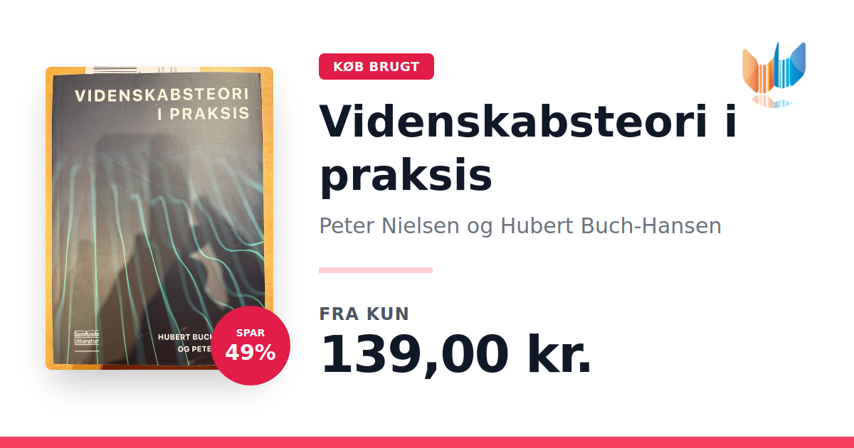 Lige nu kan du købe "Videnskabsteori i praksis" af Peter Nielsen og Hubert Buch-Hansen til kun 139,00 kr. Du sparer hele 49% af nyprisen! Bogen du ser her er brugt, og i perfekt stand. Vi har i øjeblikket 2 eksemplarer til salg af "Videnskabsteori i praksis", så husk at se de forskellige udgaver.