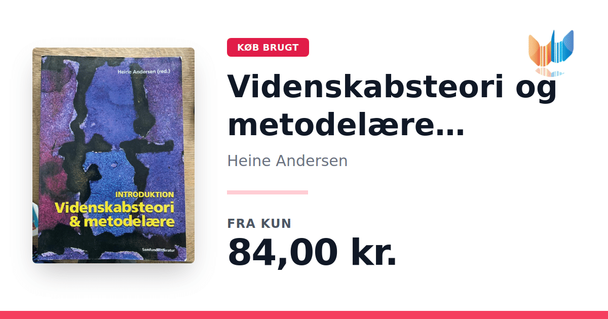 Lige nu kan du købe "Videnskabsteori og metodelære Introduktion" af Heine Andersen til kun 84,00 kr. Bogen du ser her er brugt, og i perfekt stand. Vi har i øjeblikket kun et enkelt eksemplar til salg af "Videnskabsteori og metodelære Introduktion", så slå til mens du kan!