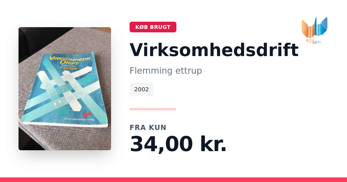 Lige nu kan du købe "Virksomhedsdrift" af Flemming ettrup til kun 34,00 kr. Bogen du ser her er brugt, og i god stand. Vi har i øjeblikket 2 eksemplarer til salg af "Virksomhedsdrift", så husk at se de forskellige udgaver.