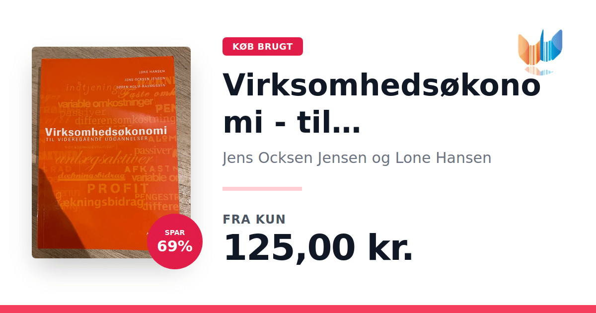 Lige nu kan du købe "Virksomhedsøkonomi - til videregående uddannelser" af Jens Ocksen Jensen og Lone Hansen til kun 125,00 kr. Du sparer hele 69% af nyprisen! Bogen du ser her er brugt, og i god stand. Vi har i øjeblikket kun et enkelt eksemplar til salg af "Virksomhedsøkonomi - til videregående uddannelser", så slå til mens du kan!
