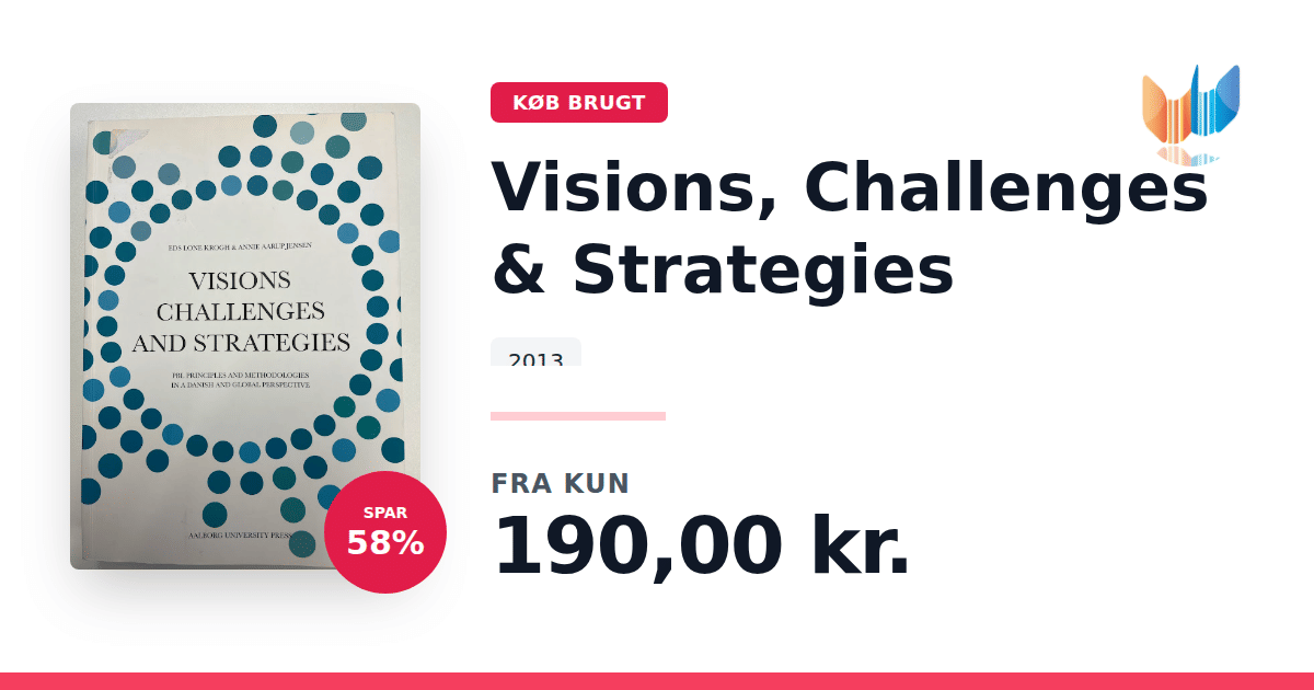 Lige nu kan du købe "Visions, Challenges & Strategies" til kun 190,00 kr. Du sparer hele 58% af nyprisen! Bogen du ser her er brugt, og i perfekt stand. Vi har i øjeblikket kun et enkelt eksemplar til salg af "Visions, Challenges & Strategies", så slå til mens du kan!
