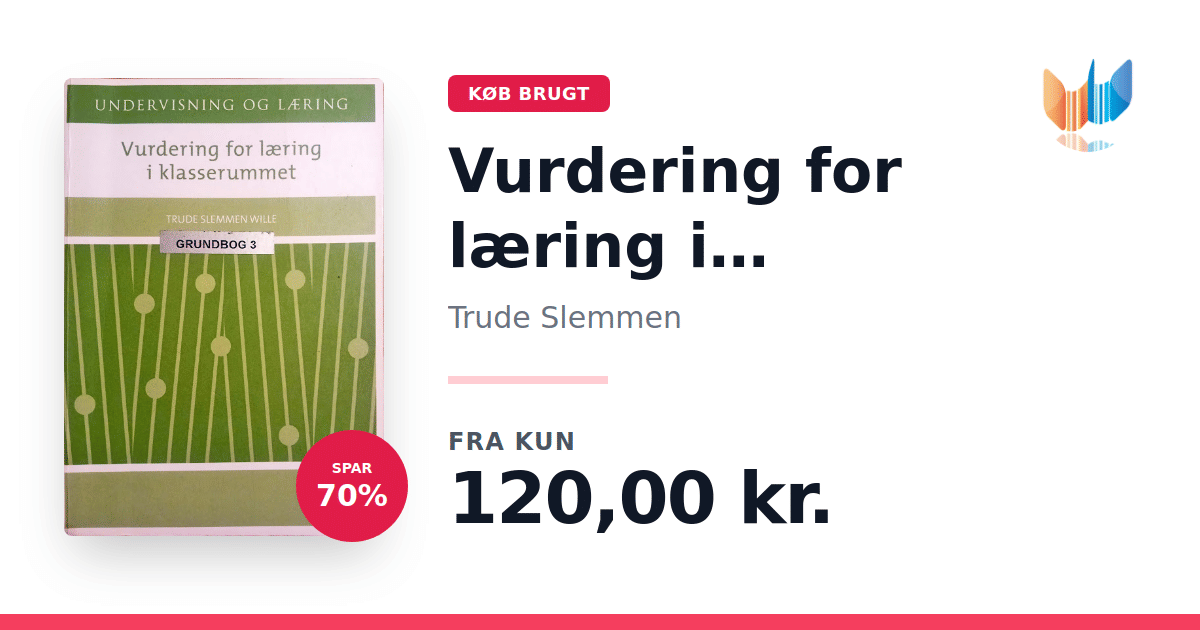 "Vurdering for læring i klasserummet" af Trude Slemmen er en metodebog, der sætter fokus på en kontinuerlig og konstruktiv evalueringspraksis, hvor både lærere og elever aktivt bidrager til undervisningen. Bogen illustrerer, hvordan en løbende evaluering – hvor klare mål og tydelige kriterier danner baggrund – kan give læreren mulighed for at tilpasse og differentiere undervisningen, mens eleven får indblik og ejerskab over sin egen læringsproces. Bogen er inddelt i to hoveddele. I den første del introduceres begrebet "vurdering for læring" samt de seneste forskningsresultater på området. Herefter præsenteres ti vejledende principper, som giver konkrete redskaber og inspirerende praksiseksempler til, hvordan vurdering for læring kan implementeres effektivt i klasseværelset. Med sine 208 sider giver "Vurdering for læring i klasserummet" et solidt grundlag for at udvikle en dynamisk og læringsfremmende undervisningspraksis.