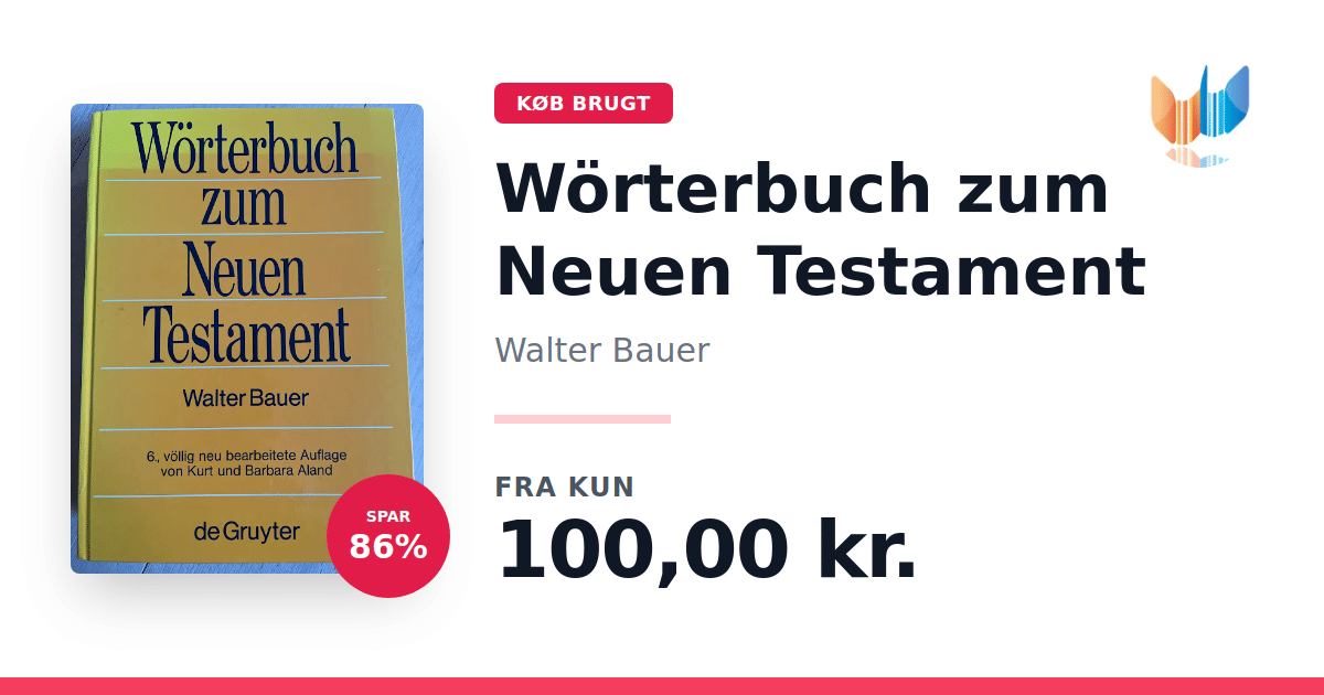 Lige nu kan du købe "Wörterbuch zum Neuen Testament" af Walter Bauer til kun 100,00 kr. Du sparer hele 86% af nyprisen! Bogen du ser her er brugt, og i perfekt stand. Vi har i øjeblikket kun et enkelt eksemplar til salg af "Wörterbuch zum Neuen Testament", så slå til mens du kan!