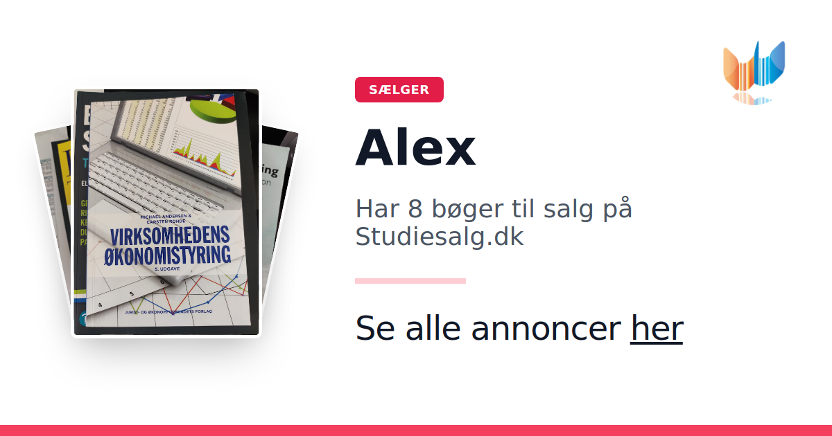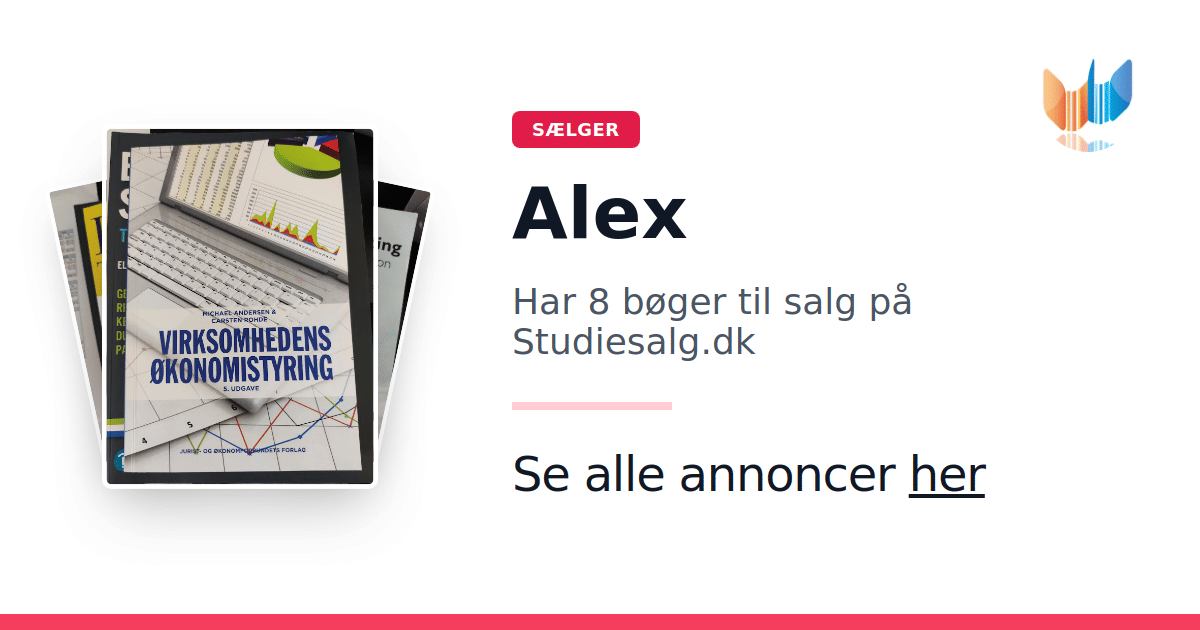 Sæt dine bøger gratis til salg på Studiesalg.dk. Det er tager få minutter, og vi står for betaling og fragt når de bliver solgt.