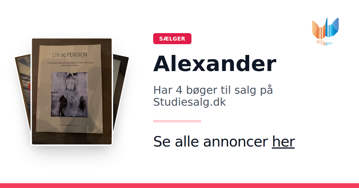 Sæt dine bøger gratis til salg på Studiesalg.dk. Det er tager få minutter, og vi står for betaling og fragt når de bliver solgt.