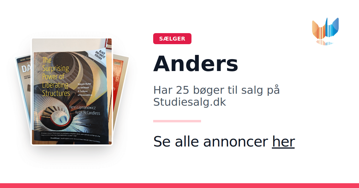 Sæt dine bøger gratis til salg på Studiesalg.dk. Det er tager få minutter, og vi står for betaling og fragt når de bliver solgt.