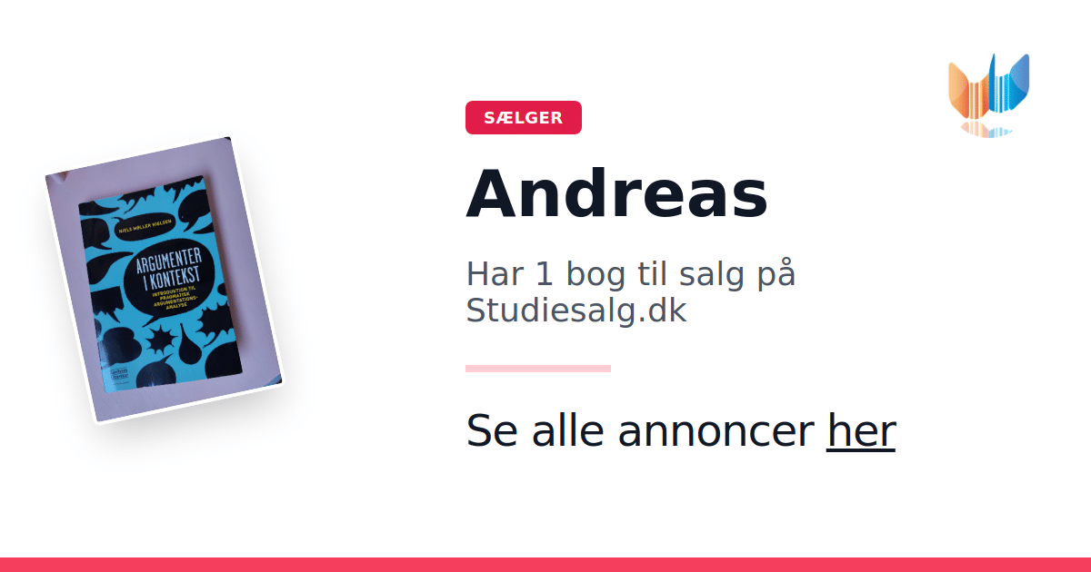 Sæt dine bøger gratis til salg på Studiesalg.dk. Det er tager få minutter, og vi står for betaling og fragt når de bliver solgt.